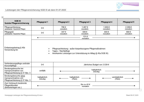 Eine Kombination aus Sach- und Geldleistungen ist ebenfalls möglich. Hierzu beraten Sie die Mitarbeiter der Diakonie-/Sozialstation gerne.